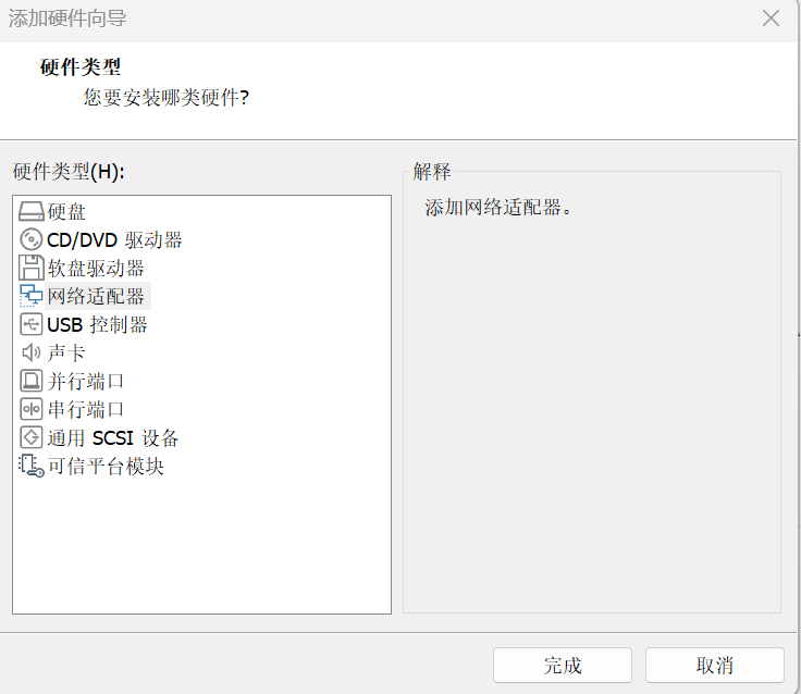 在虚拟机添加网络适配器