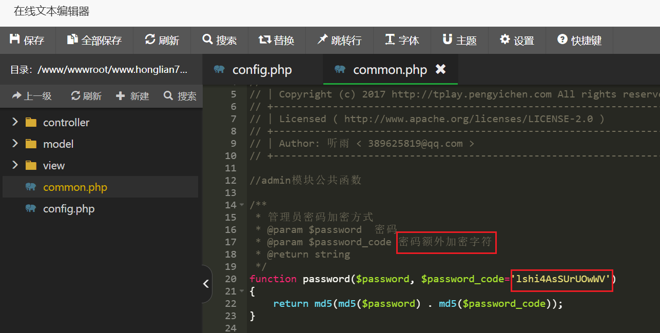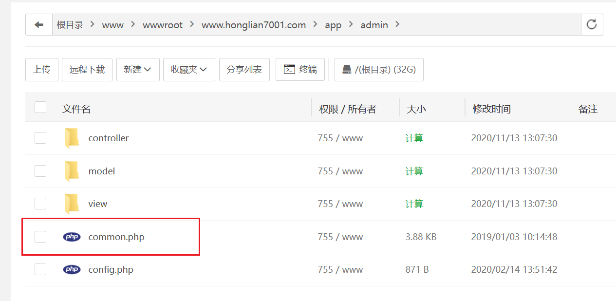 在管理员目录下看common.php