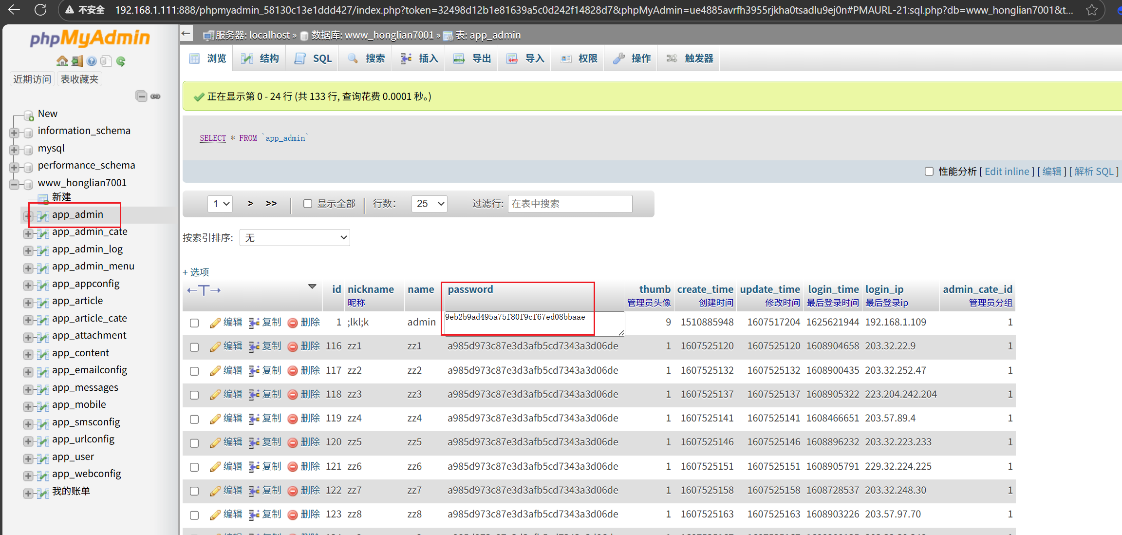 就可以看到我们密码的存储方式了