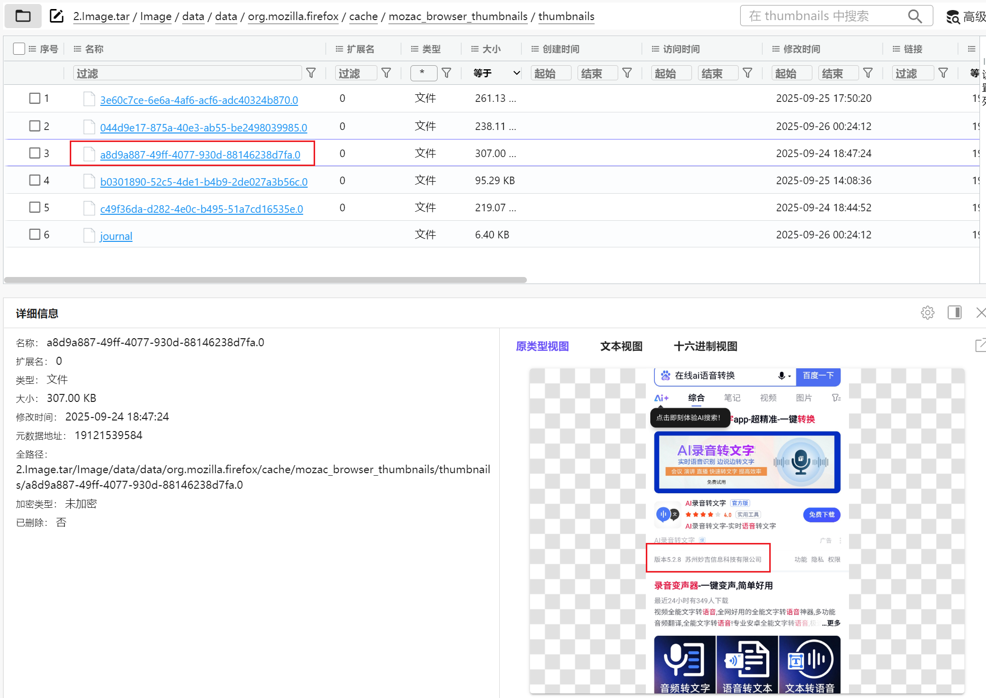 24、分析手机检材,机主使用火狐浏览器搜索了“在线ai语音转换”,请问浏览器返回的结果中,第一条记录显示的应用版本号是?(答案格式:1.2.3)