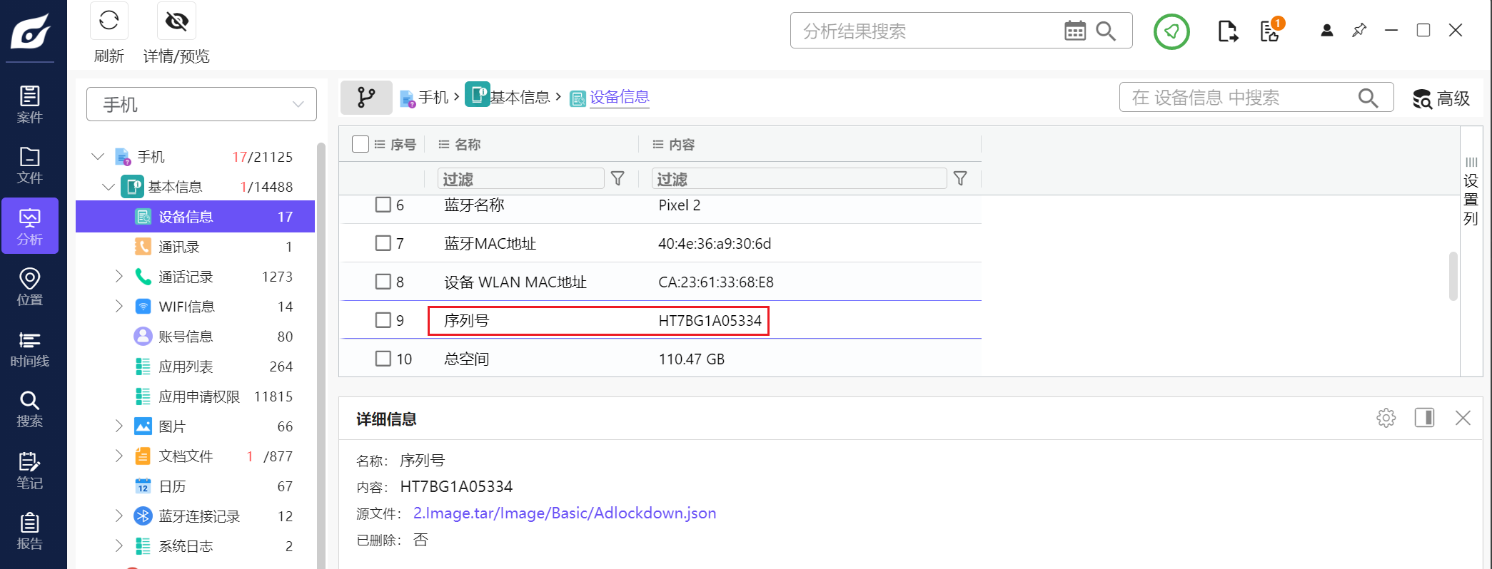 21、分析手机检材,手机的序列号是?(答案格式:字母大写)