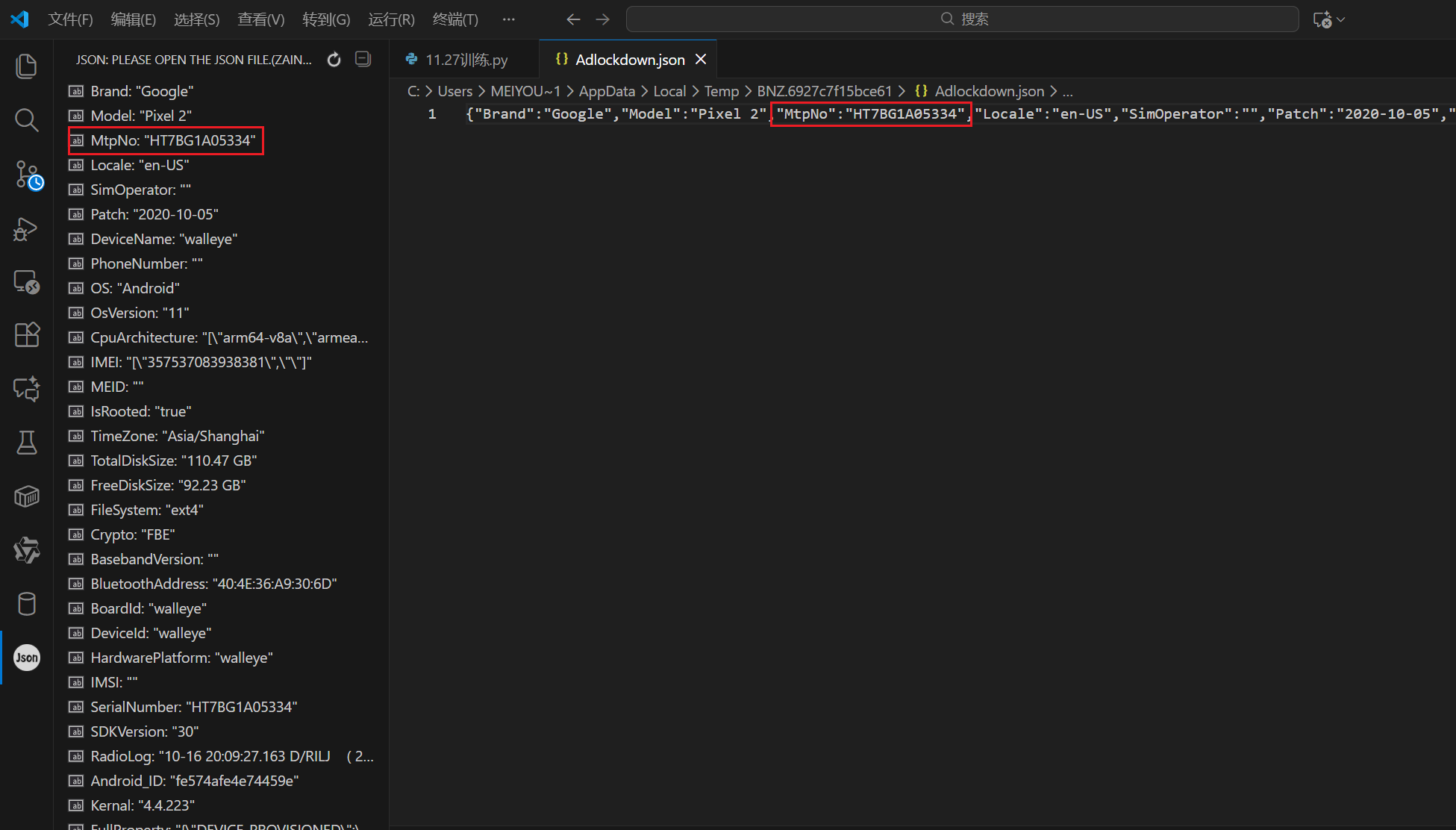 有json的插件看起来更方便了,当然直接搜MtpNo也是一样的,可以直接看到是HT7BG1A05334