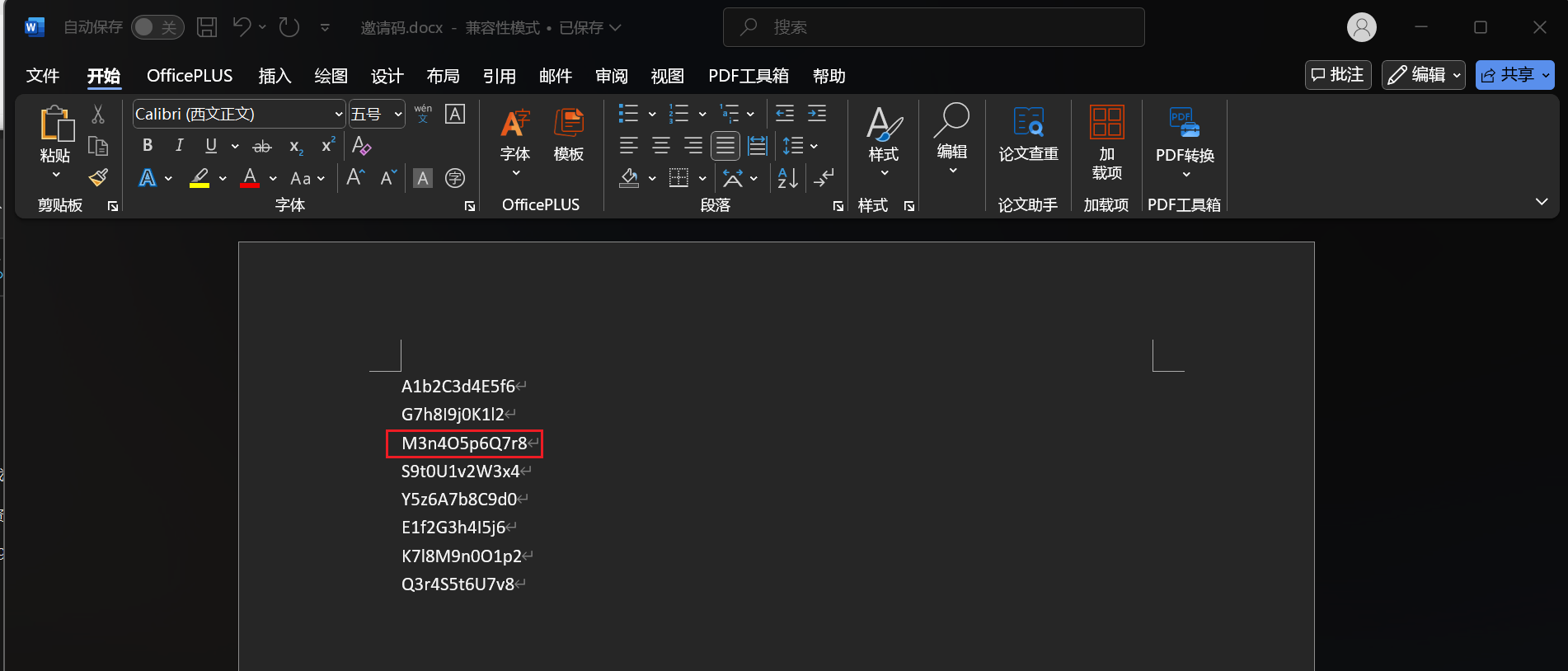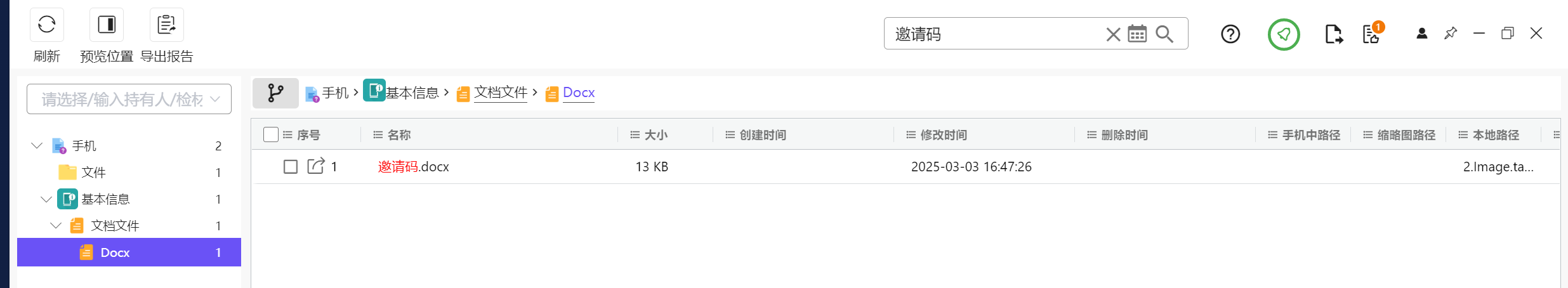 26、分析手机检材,邀请码.docx文件第三行内容为?(答案格式:与线索保持一致)