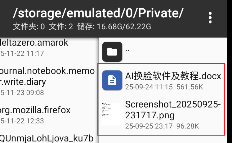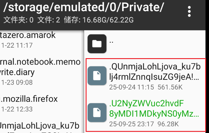 这个之后我们可以直接先保持加密的状态,然后这俩文件复制到/storage/emulated/0/Private这个路径