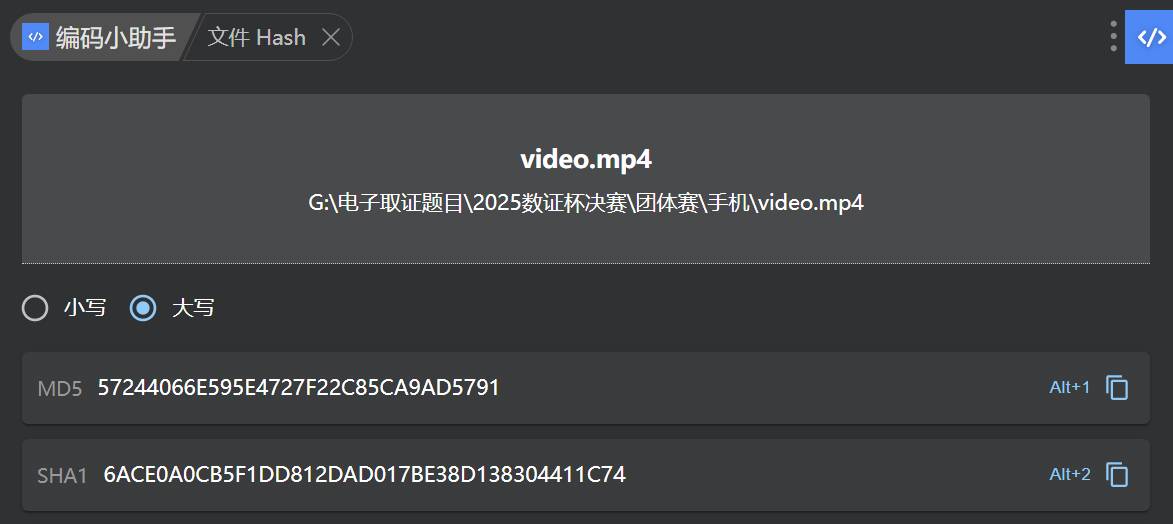 33、请分析手机检材,机主收到了一个视频,该视频损坏后,机主对其进行了修复,请计算修复后的视频SHA1值?(答案格式:字母大写)