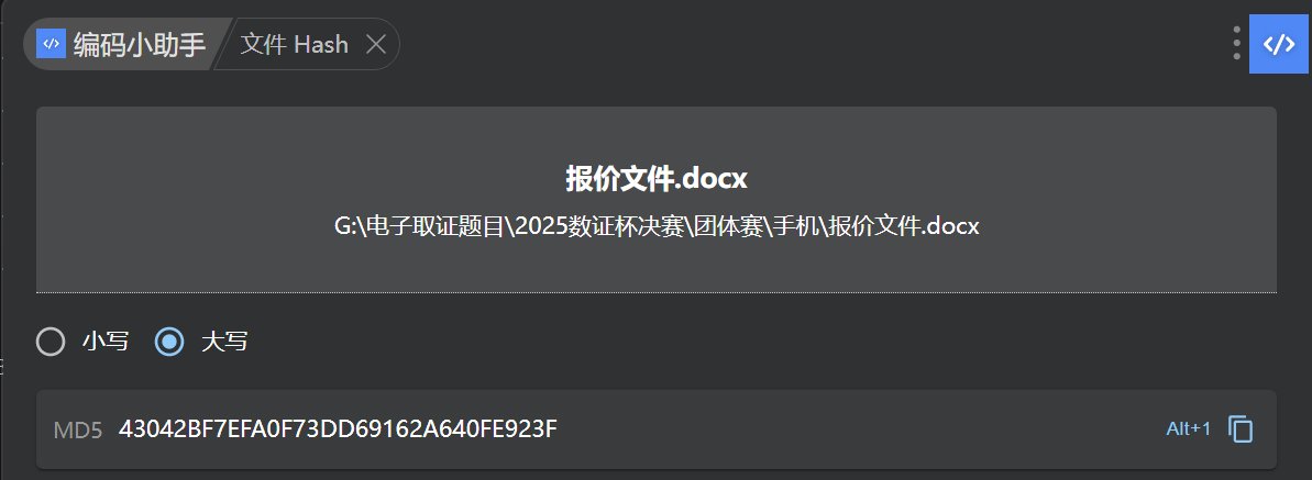 35、请分析手机检材,报价文件的MD5值为?(答案格式:字母大写)
