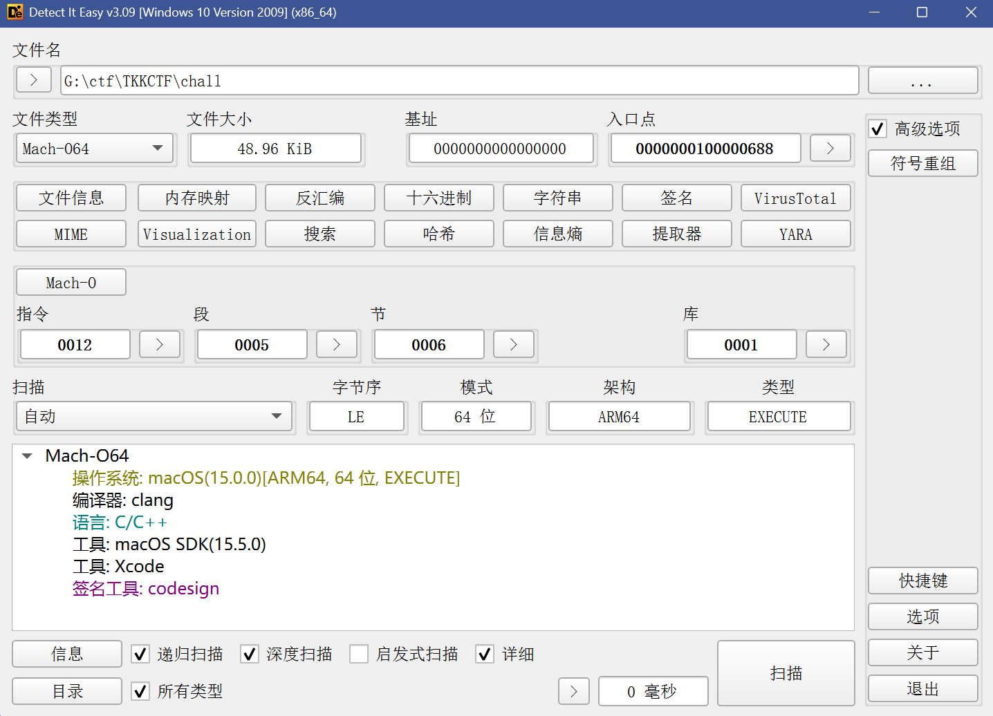 先die和file看看,没什么特别的,是一个arm64的Mach-O可执行文件