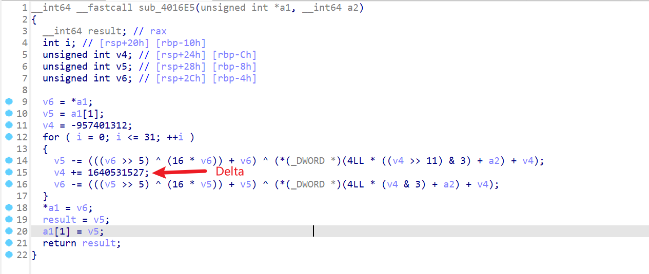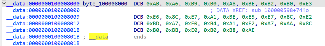 核心加密区域明显在这一块,a2是key,然后byte_100008000里边存着的都是密文