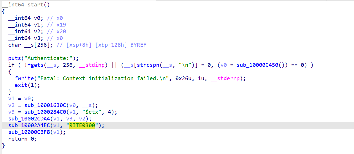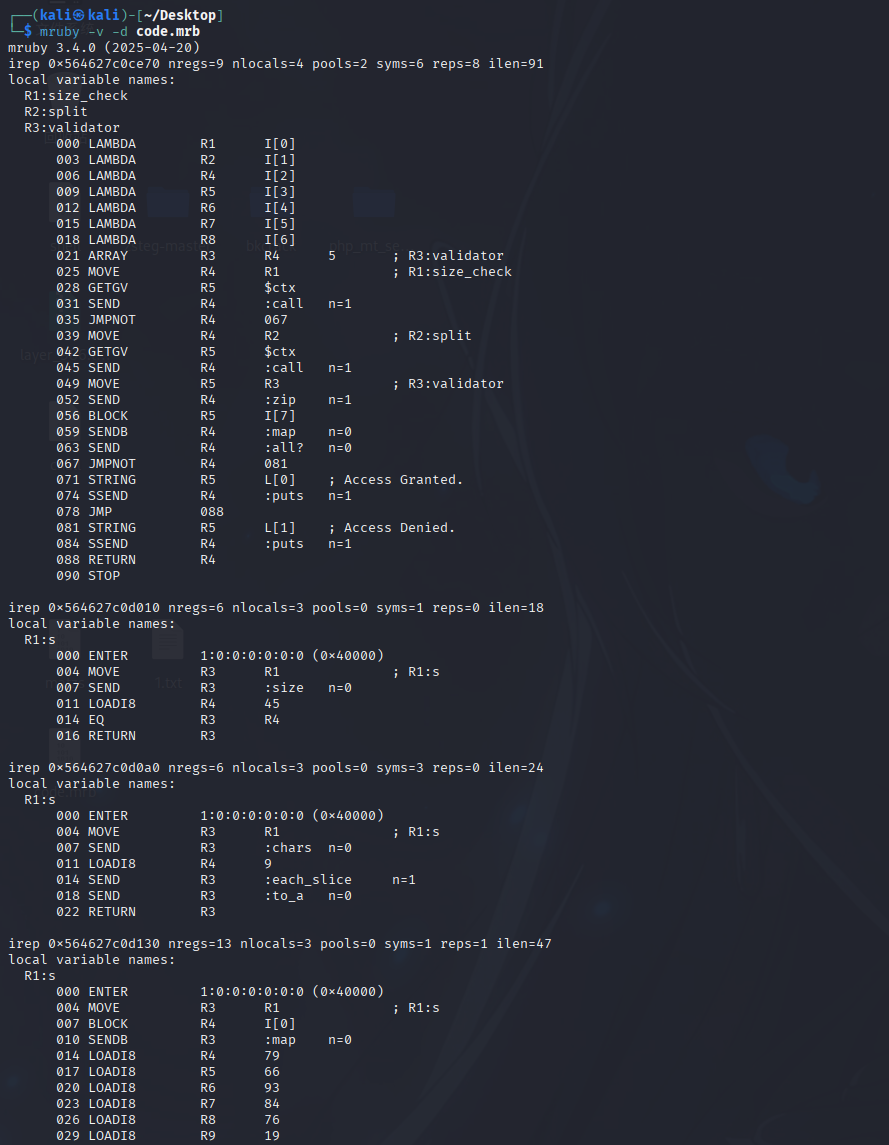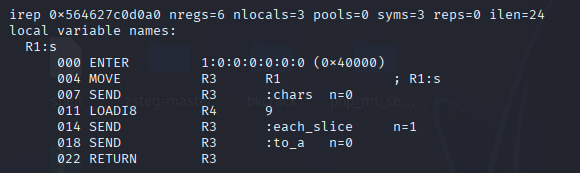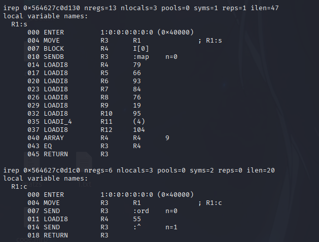 最核心的是RITE0300完美对应 mruby 的字节码格式标志,本题就是一个宿主C程序加上了内嵌的mruby的结构