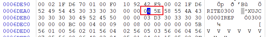 我们通过标志位RITE0300来锁定并gerp获得偏移量