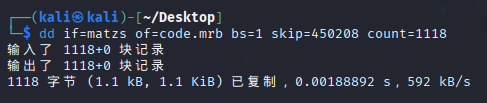 1 2 3 4 OFFSET=450208 SIZE=1118 dd if=matzs of=code.mrb bs=1 skip=$OFFSET count=$SIZE