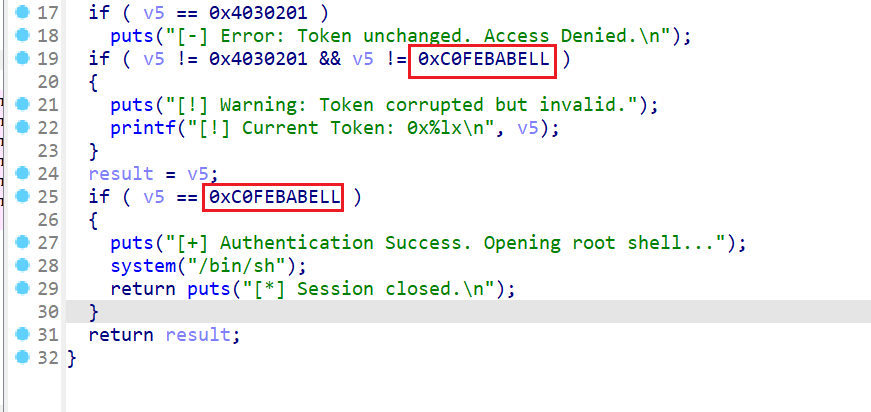 让v5初始值为0x04030201,然后填充进去0xBEBABEC0即可(小端序)