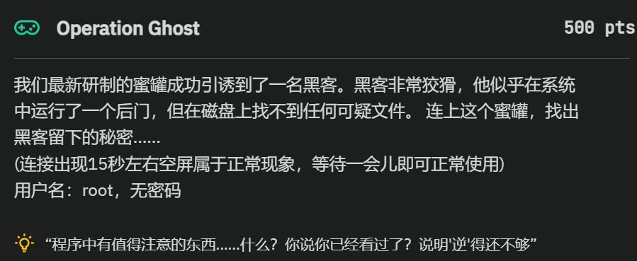 本题就是这样子一个蜜罐,被黑客打了,但是黑客隐藏起来了,我们需要找到他留下来的秘密