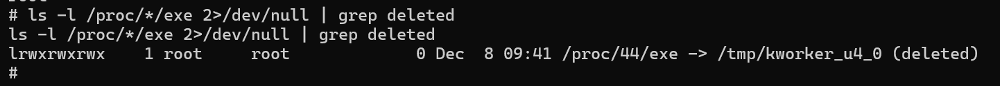 1 ls -l /proc/*/exe 2>/dev/null | grep deleted