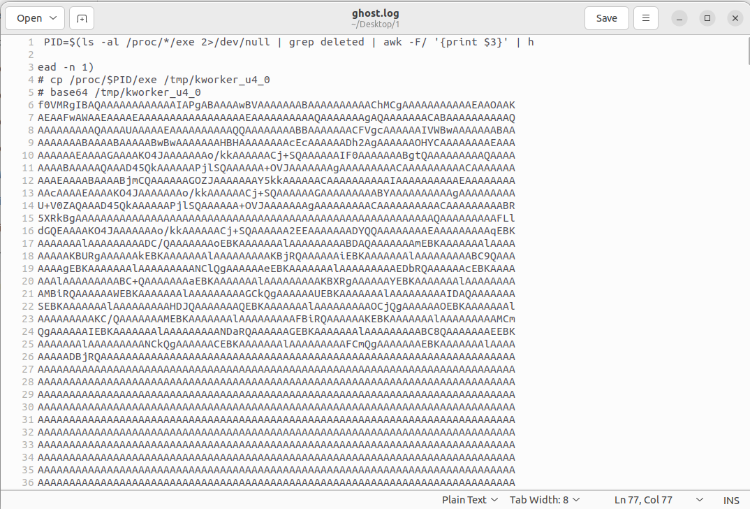 1 2 3 4 5 6 7 8 9 10 11 12 13 14 15 16 17 18 19 20 21 22 23 24 25 26 27 28 29 30 31 32 33 34 35 36 37 38 39 40 41 42 43 44 45 46 47 48 49 50 51 52 53 54 55 56 57 58 59 60 61 62 63 64 import sys import threading import time from pwn import * HOST = '47.122.52.77' PORT = 33785 LOG_FILENAME = "ghost.log" def main(): try: io = remote(HOST, PORT) except: print("[-] 连接失败") return io.recvuntil(b"TKKCSec login:") io.sendline(b'root') io.recvuntil(b'#') # 打开日志文件准备写入 log_file = open(LOG_FILENAME, 'wb') # 定义一个标志位用于控制线程退出 running = True # 接收 def receiver(): while running: try: # 每次读取一点数据 data = io.recv(timeout=0.1) if not data: continue # 写入文件 log_file.write(data) log_file.flush() except EOFError: print("\n[*] 断开连接") break except Exception: break # 启动接收线程 t = threading.Thread(target=receiver) t.daemon = True t.start() io.sendline("PID=$(ls -al /proc/*/exe 2>/dev/null | grep deleted | awk -F/ '{print $3}' | head -n 1)".encode()) time.sleep(2) io.sendline("cp /proc/$PID/exe /tmp/kworker_u4_0".encode()) time.sleep(2) io.sendline("base64 /tmp/kworker_u4_0".encode()) time.sleep(10) # 清理 running = False log_file.close() io.close() if __name__ == "__main__": main()