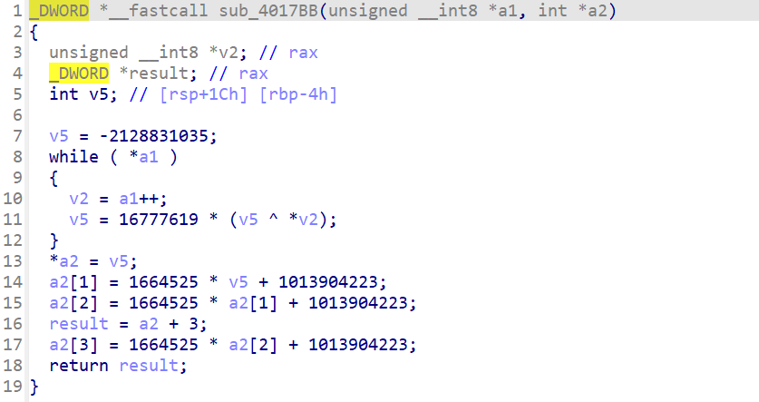 可以看到用的是FNV-1a哈希和线性同余生成器(LCG)