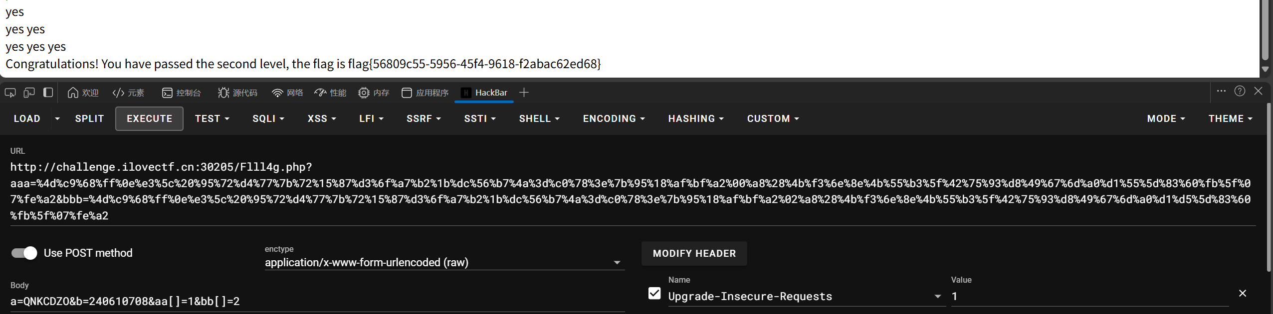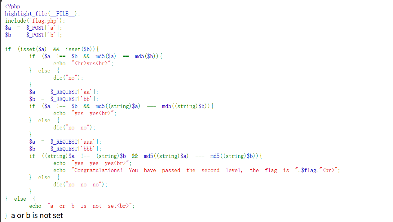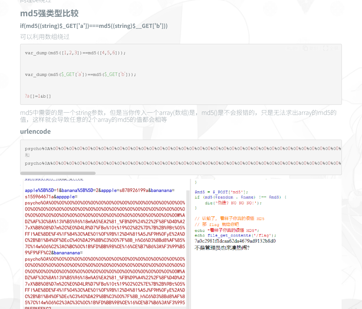 第三部分要求更高了(string)$a !== (string)$b,但MD5哈希严格相等,我们使用URL编码后的字符串