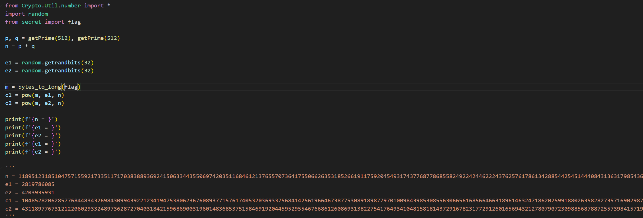 可以大概看见这些内容,是一道RSA的共模攻击