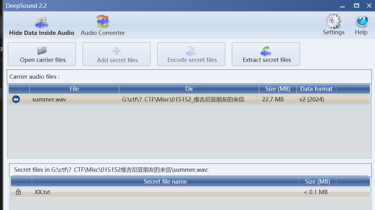 主要目的是从音频文件password.wav里边提取信息