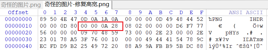 因此我们可以发现这与原图片的实高相差甚远,只要改成00000A28即可解决问题