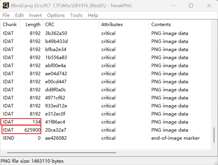 一般一张png图片在生成的时候就会计算出图片的IDAT块长度,超出长度的会被放入下一个IDAT块中,因此基本上是定长,直到最后一块