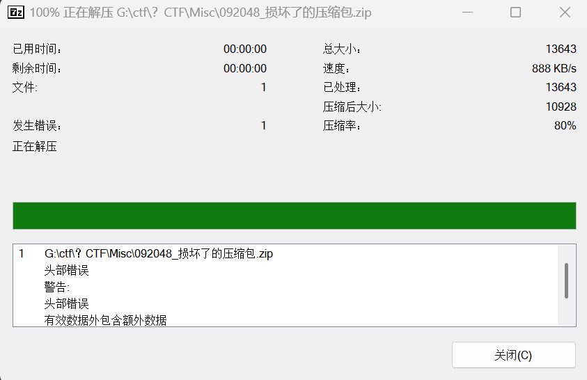 发现压缩包的dirEntry区损坏了,在修复之前: