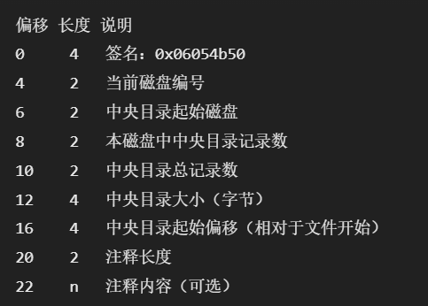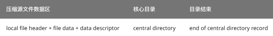 我们都知道,zip分为三个结构,目录结束标识存在于整个ZIP的结尾,用于标记压缩的目录数据的结束,因此每个压缩文件都必须有且仅有一个EOCD记录