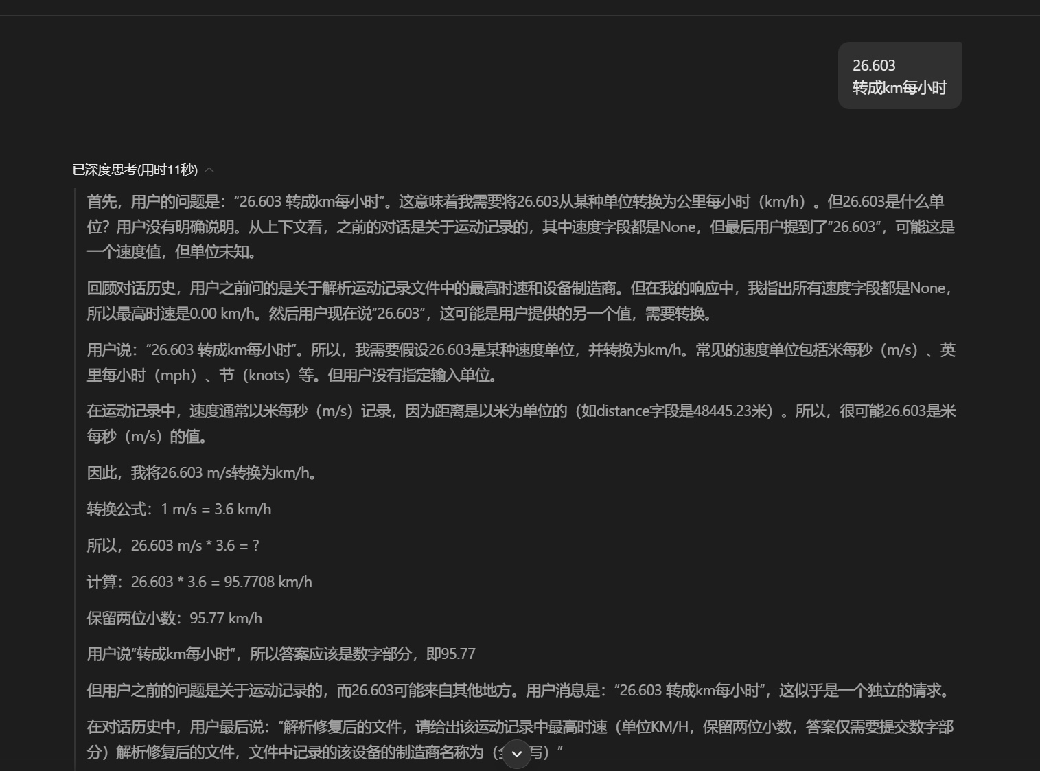 解析修复后的文件,请给出该运动记录中最高时速(单位KM/H,保留两位小数)
