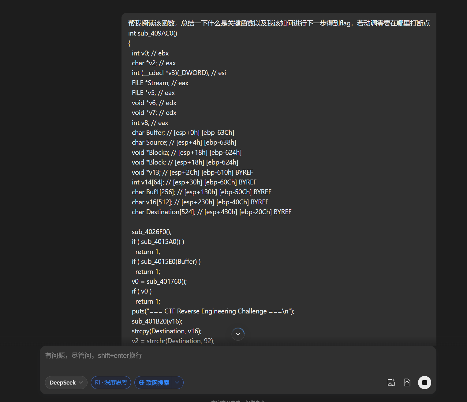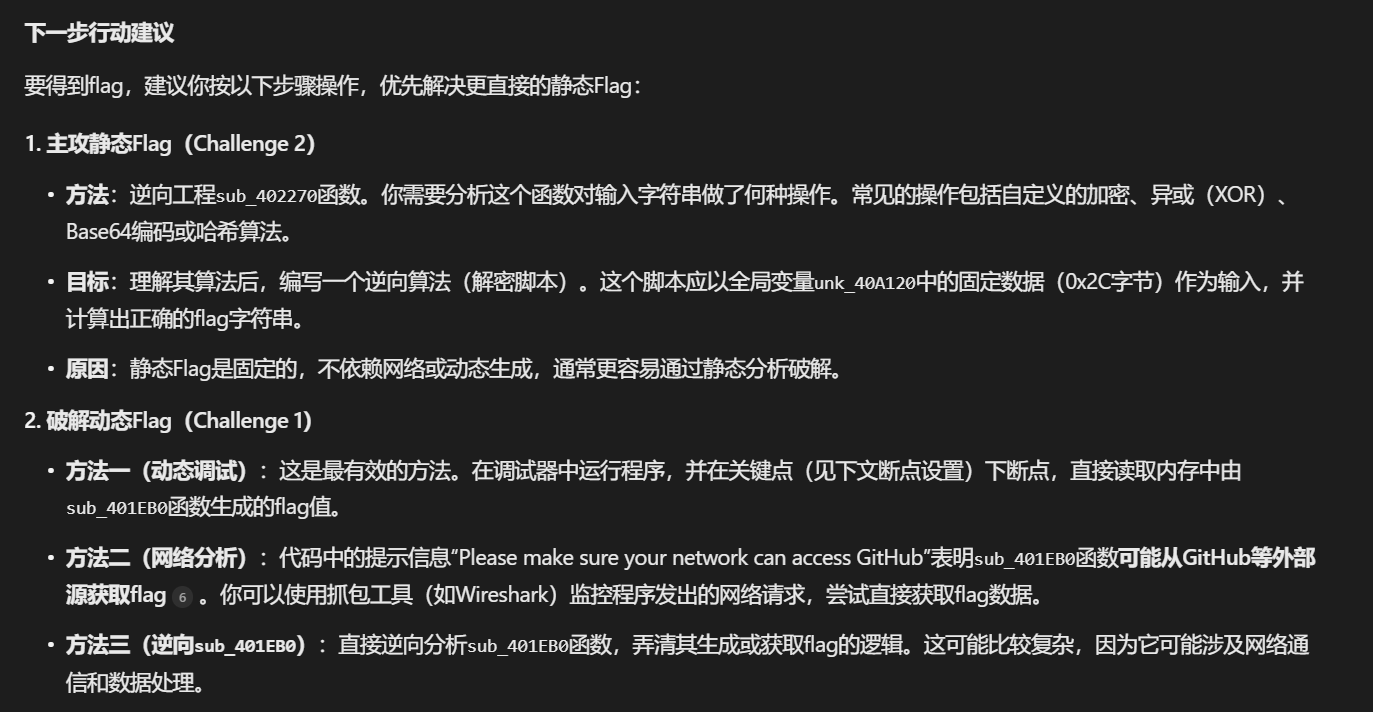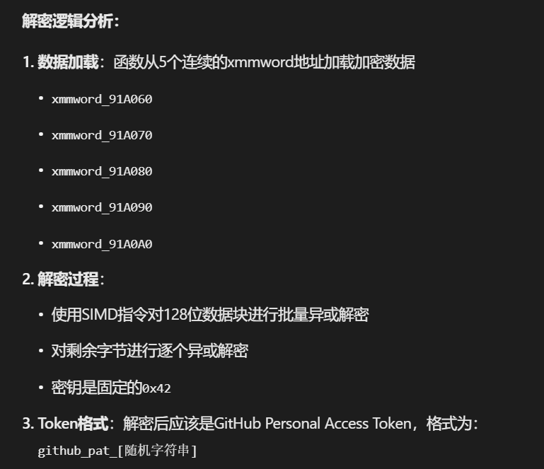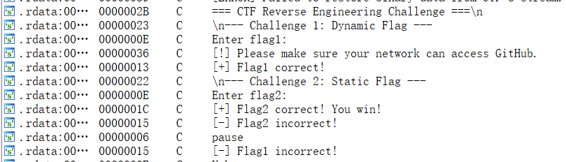 - Flag 1 (动态指令): 分析发现,该程序启动后会尝试连接一个远程的C2(命令与控制)服务器来获取一个动态的“行动指令”,这个指令就是 Flag 1。你需要弄清楚程序是如何构建通信URL、如何进行身份验证的,并最终获得这个指令。攻击者似乎把它藏在了某个公开的代码托管平台上。