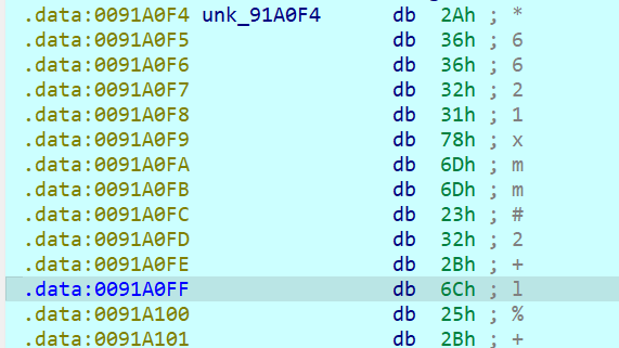 所以我们这边需要查看 unk_91A0F4 的内容: