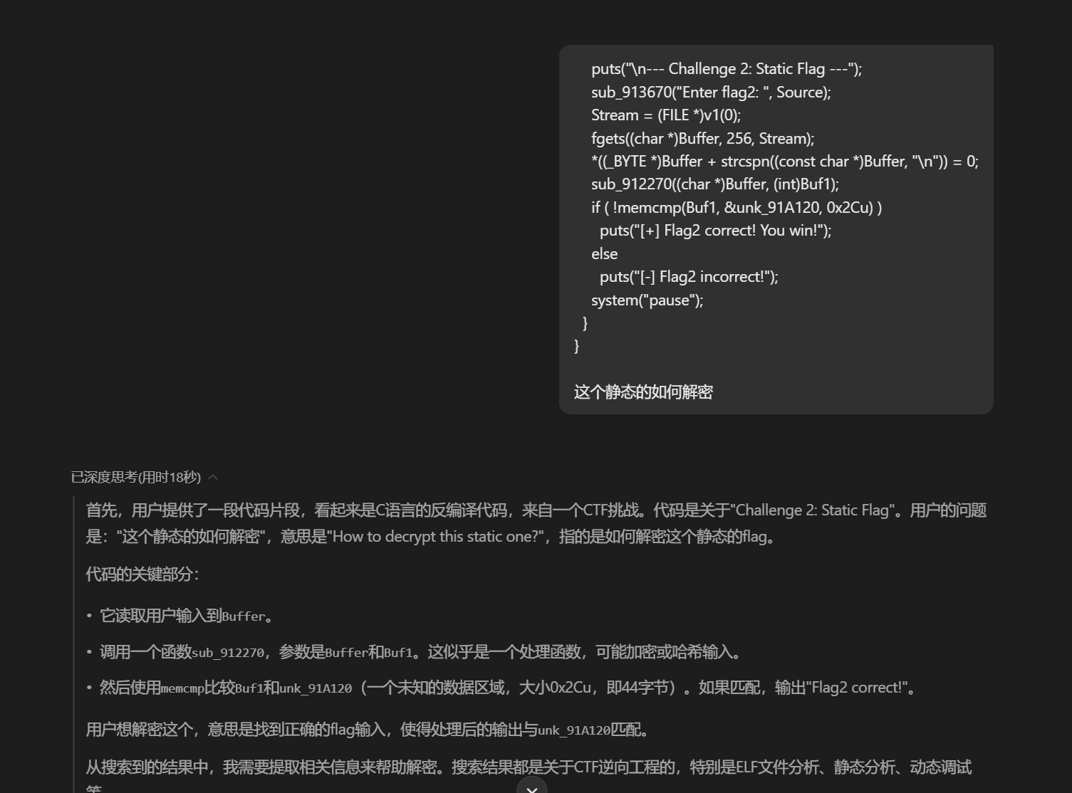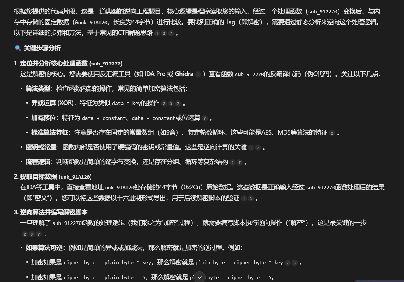 - Flag 2 (静态后门密码): 除了远程指令,程序内部还硬编码了一个用于紧急情况下激活所有后门权限的“主控密码”,它就是 Flag 2。攻击者使用了一套加密算法(包括字节替换、位旋转和多层异或)来保护它。你需要剥茧抽丝,逆向解密算法,还原出原始的密码。