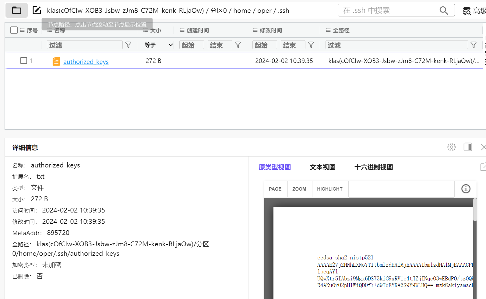 结合这个知识则我们可以去/home/oper/.ssh/authorized_keys(如果知道这个知识,但是不知道路径,其实也可以暴搜)找到对应的公钥