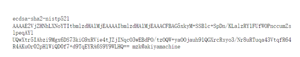 运维人员未删除公钥的所有者信息,其用户名为mzk,主机名为akiyamachine