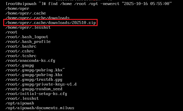 find /home /root /opt -newerct “2025-10-16 05:55:00”
