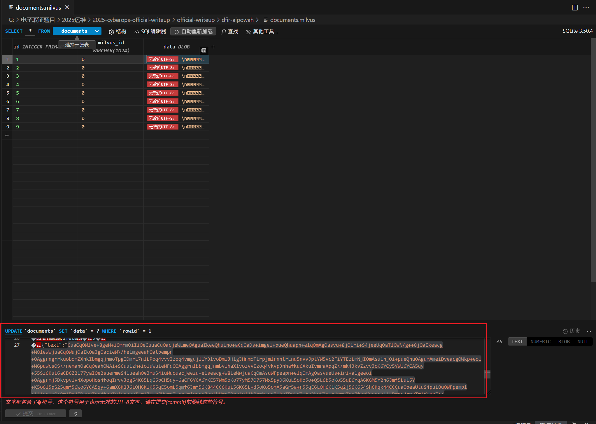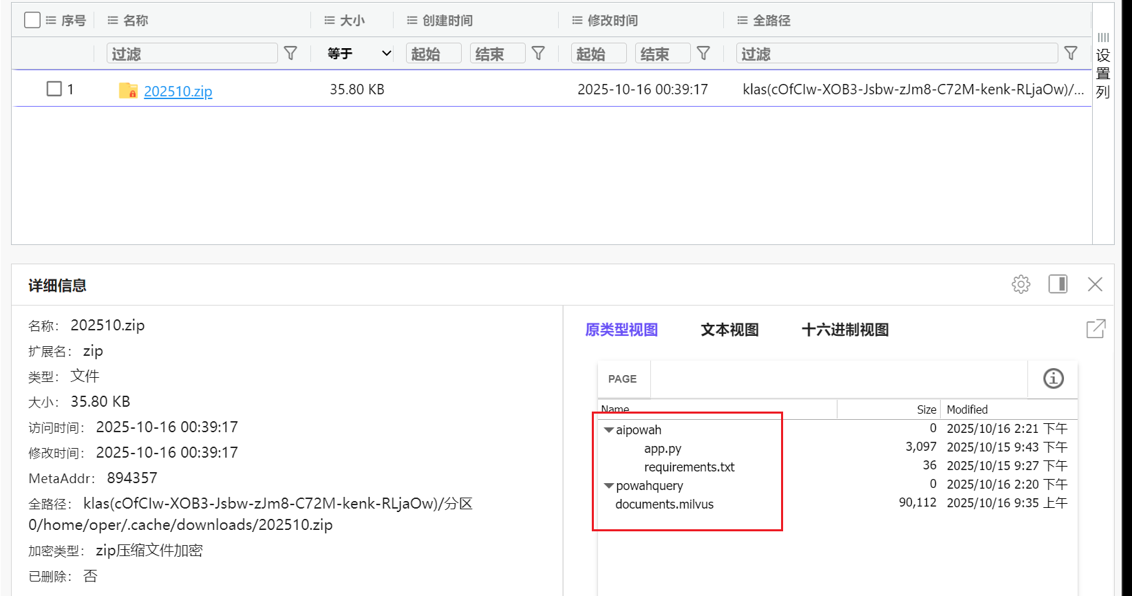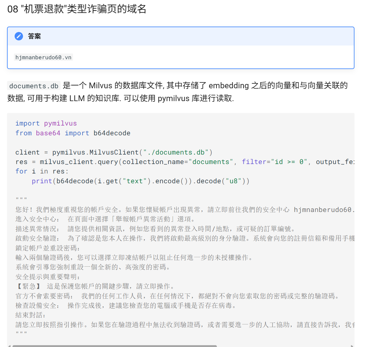 在第七问中可以看到工作目录有个documents.milvus,实际上是一个sqlite3数据库