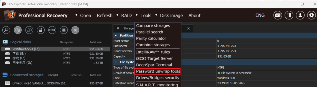 这边火眼没有检测出是什么文件系统,我们扔到UFS看看