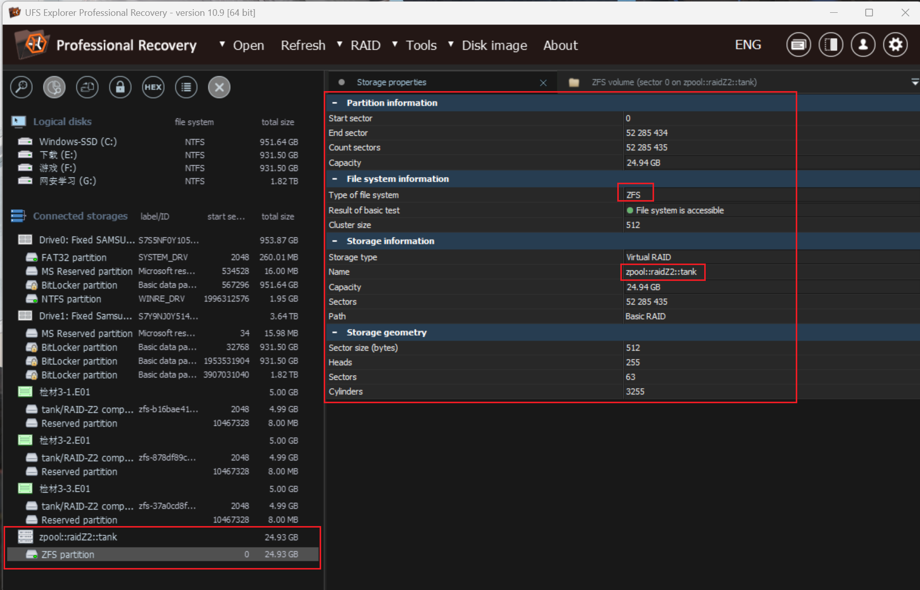 这边UFS是可以直接自动重组RAID的,只需要我们将三个文件都打开即可(这边必须一起拖动打开,一个个打开不太行)