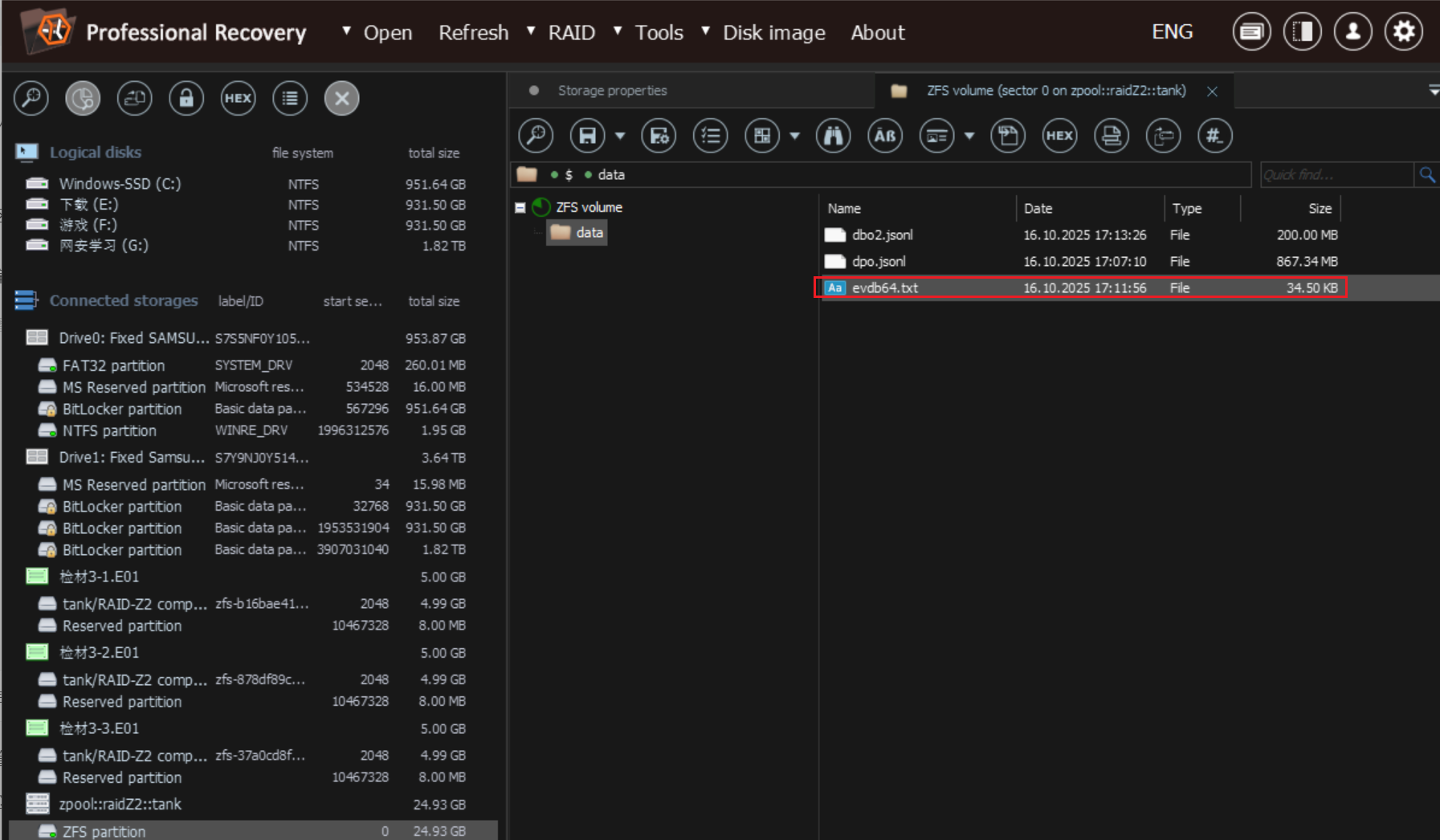 首先是这两题需要使用zpool挂载存储池,我们使用FTK挂载,这边仅挂载物理卷并选择可写