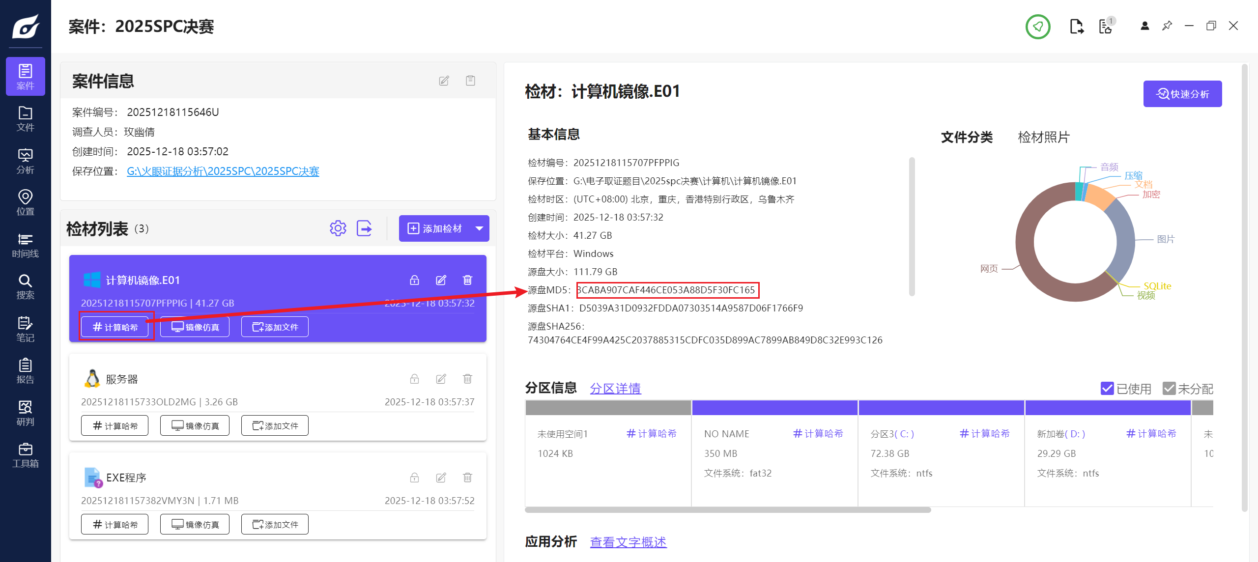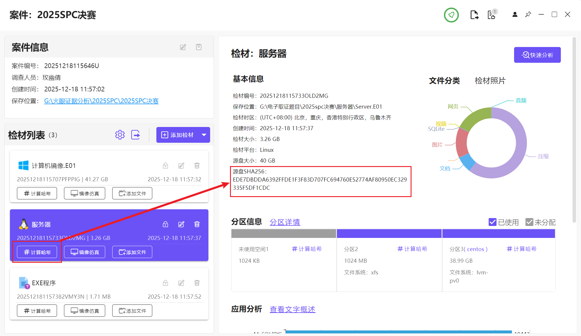 源盘的SHA256直接扔到火眼取证分析里边计算哈希就好了