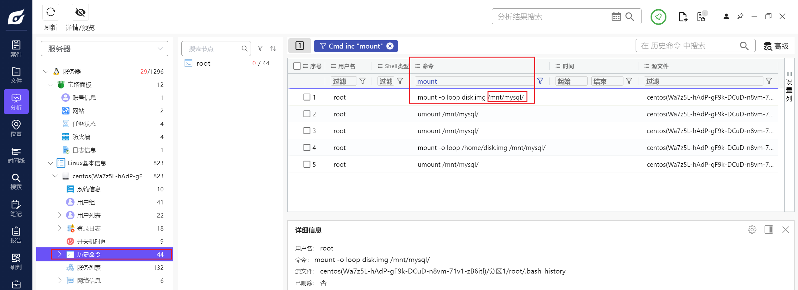 问挂载的路径,那挂载肯定是需要mount命令的,我们去历史命令看看有没有