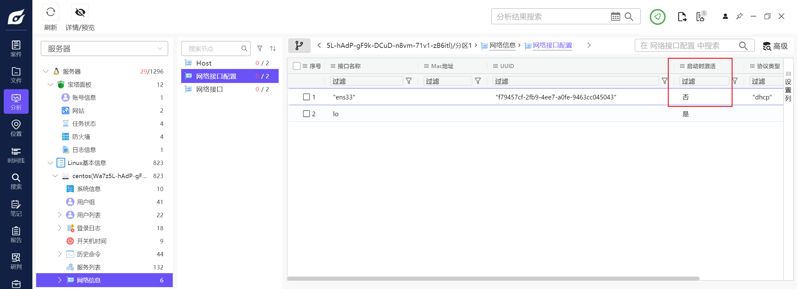 这其实是因为这个ens33接口是启动时不激活的导致的,在火眼下图也可以看见,是分析的出来的