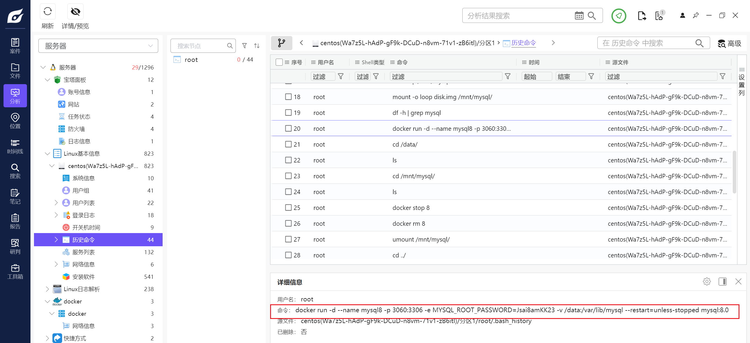 同时在这边我们还能看到有趣的东西,比如说mysql的密码,明文存储在了历史命令里:Jsai8amKK23