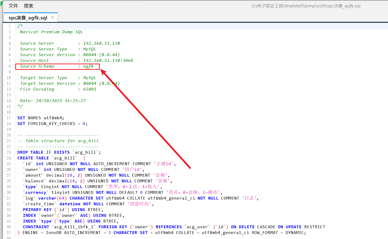 上一题拿到了备份数据库了已经,打开来看看