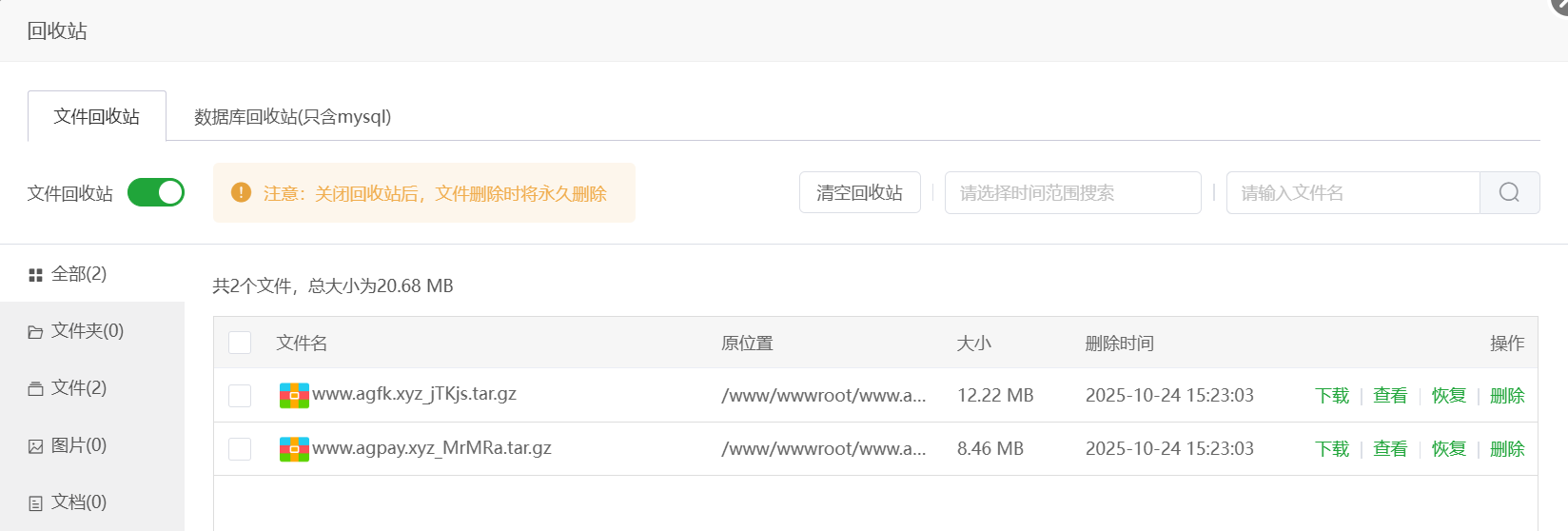 接下来就是一系列的恢复,首先是恢复网站