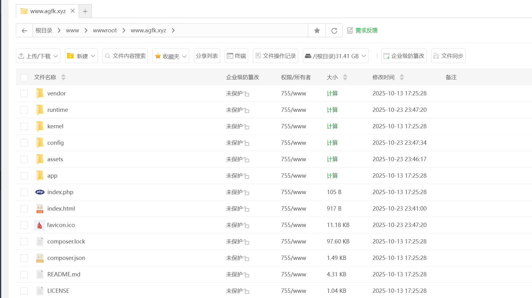 我们查看网站文件夹,发现干净的很,被删了