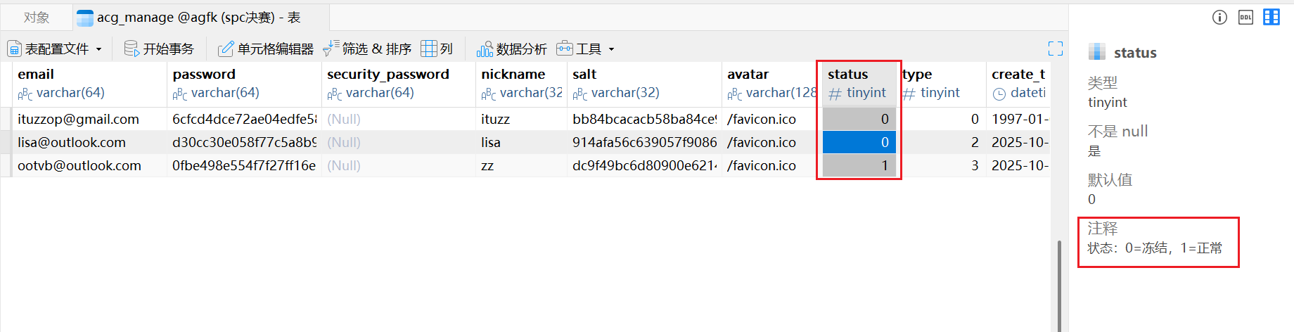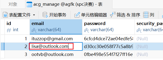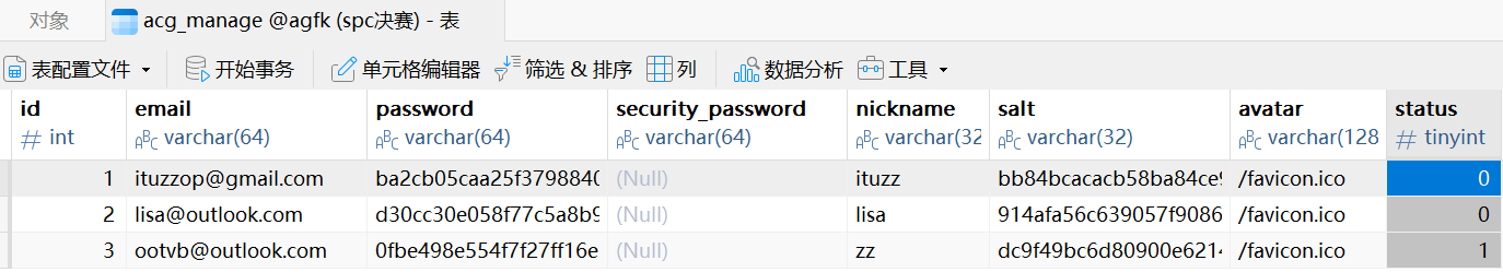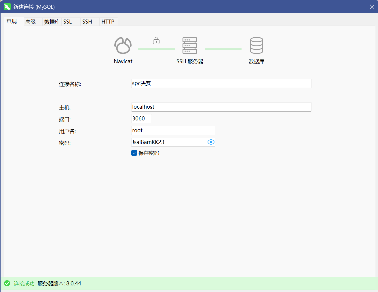 成功要运行完之后我们就可以在navicat看了,密码暴露在了命令里Jsai8amKK23