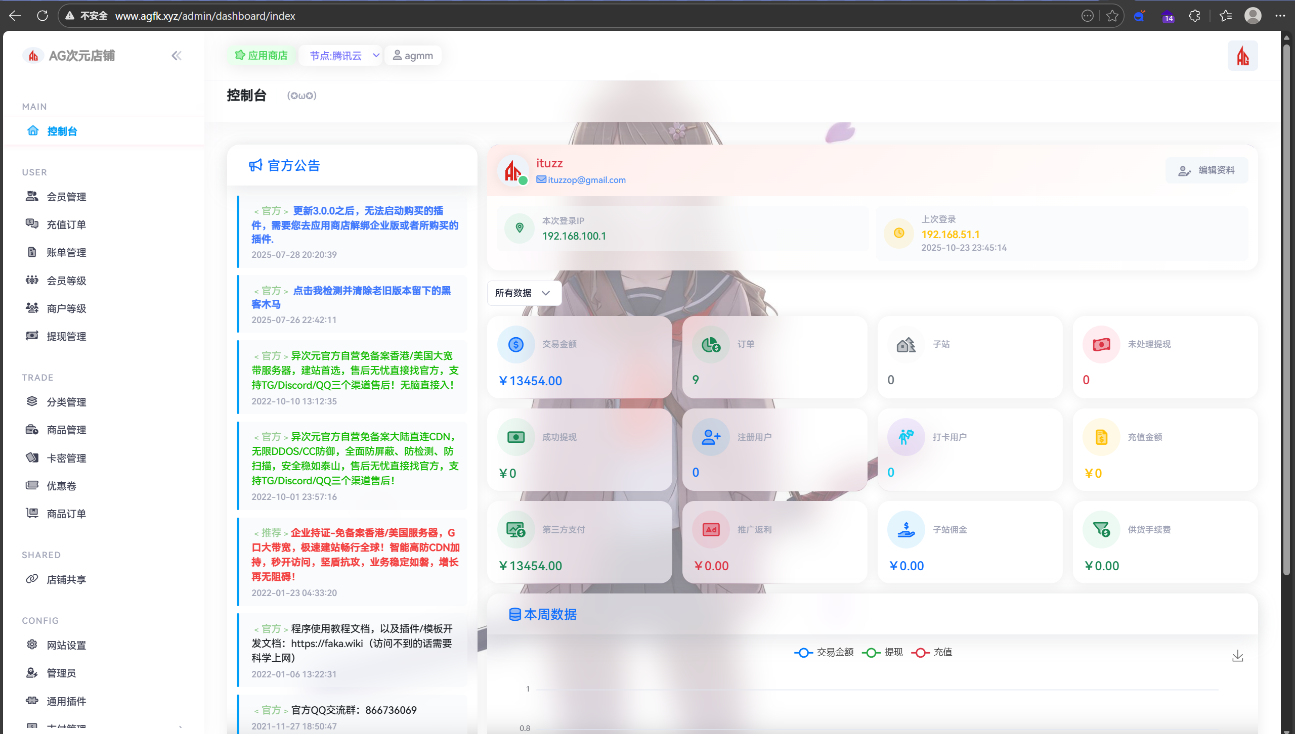 这边的数据库重建是很关键的,否则agfk店铺网站的配置文件指向agfk数据库的时候会显示找不到这玩意,然后 就进不去了,直接404了
