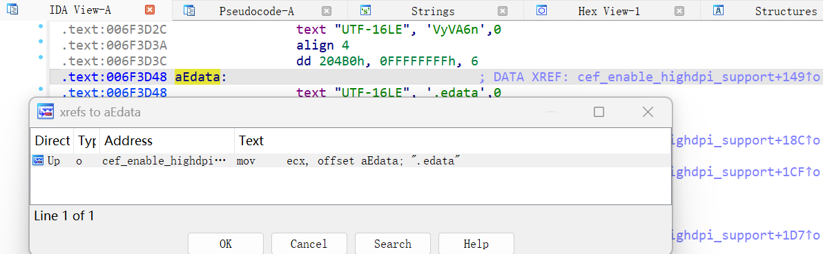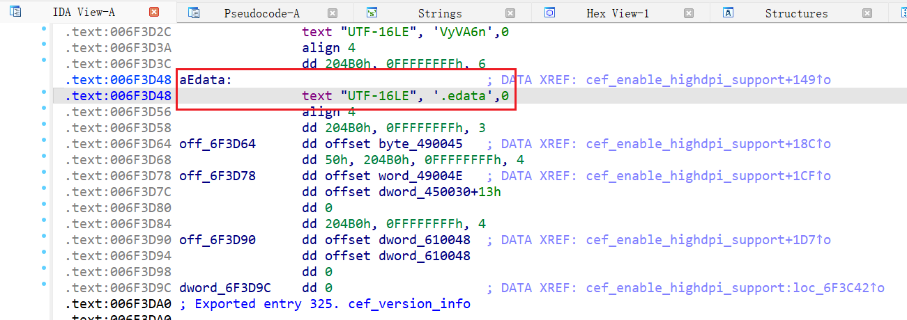 以unicode的编码搜索edata后发现了这玩意在libcef.dll里