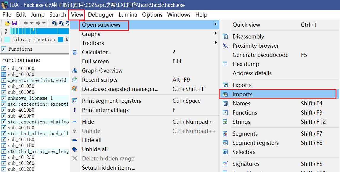 在IDA打开一下,然后在/View/Open subviews/Imports看一眼导入的内容