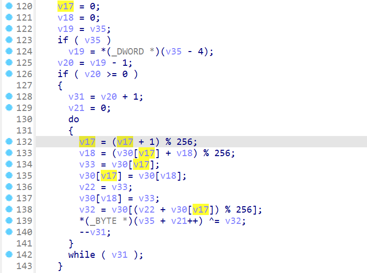 sub_504084正是RC4流解密的核心函数